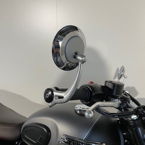 Runde Lenkerendenspiegel, Kniepads, Chrom Zierbügel, kariert gesteppte Sitzbank schwarz