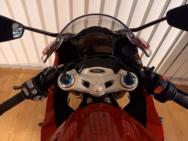 -**serienmäßig u.a. ausgestattet mit: leistungsstarken Dreizylindermotor, 5 Fahrmodi, 5" TFT-Farbdisplay, Voll-LED, Kurven-ABS und Kurven-Traktionskontrolle, Wheelie Control, Schaltassistent zum kupplungslosen Hoch-und Runterschalten, Tempomat, Keyless einschl. Tankdeckel, Bluetooth Konnektivitätssystem, Semiaktives Elektronisches Öhlins Fahrwerk, Brembo Stylema Bremsen, Carbon Teile...