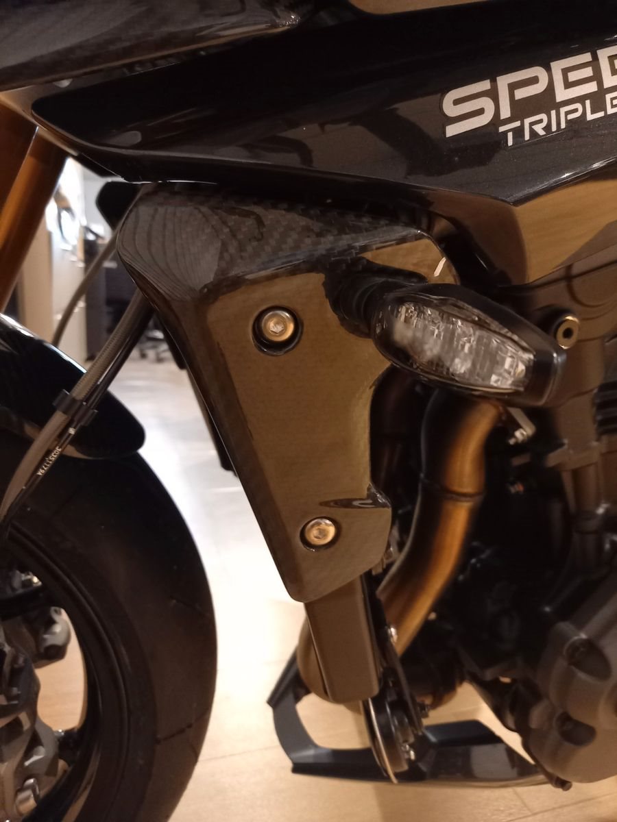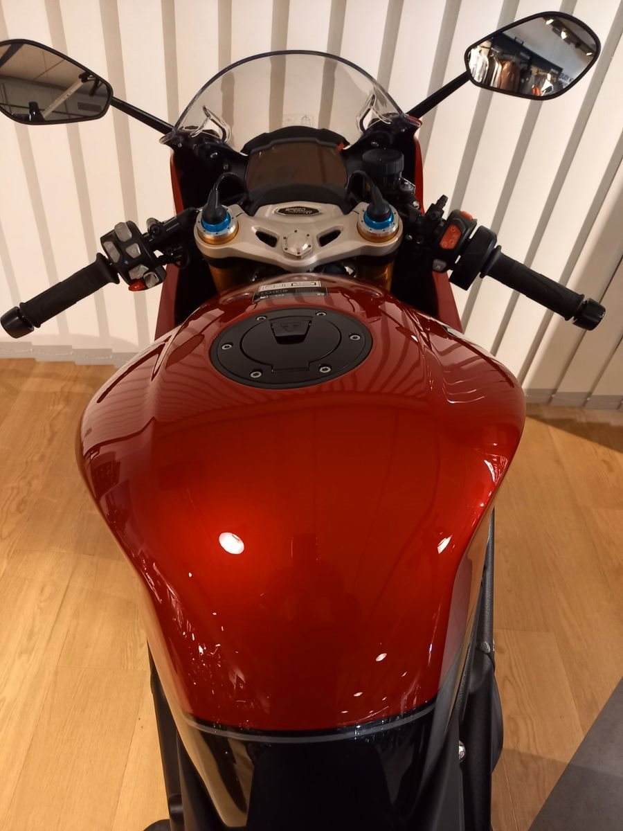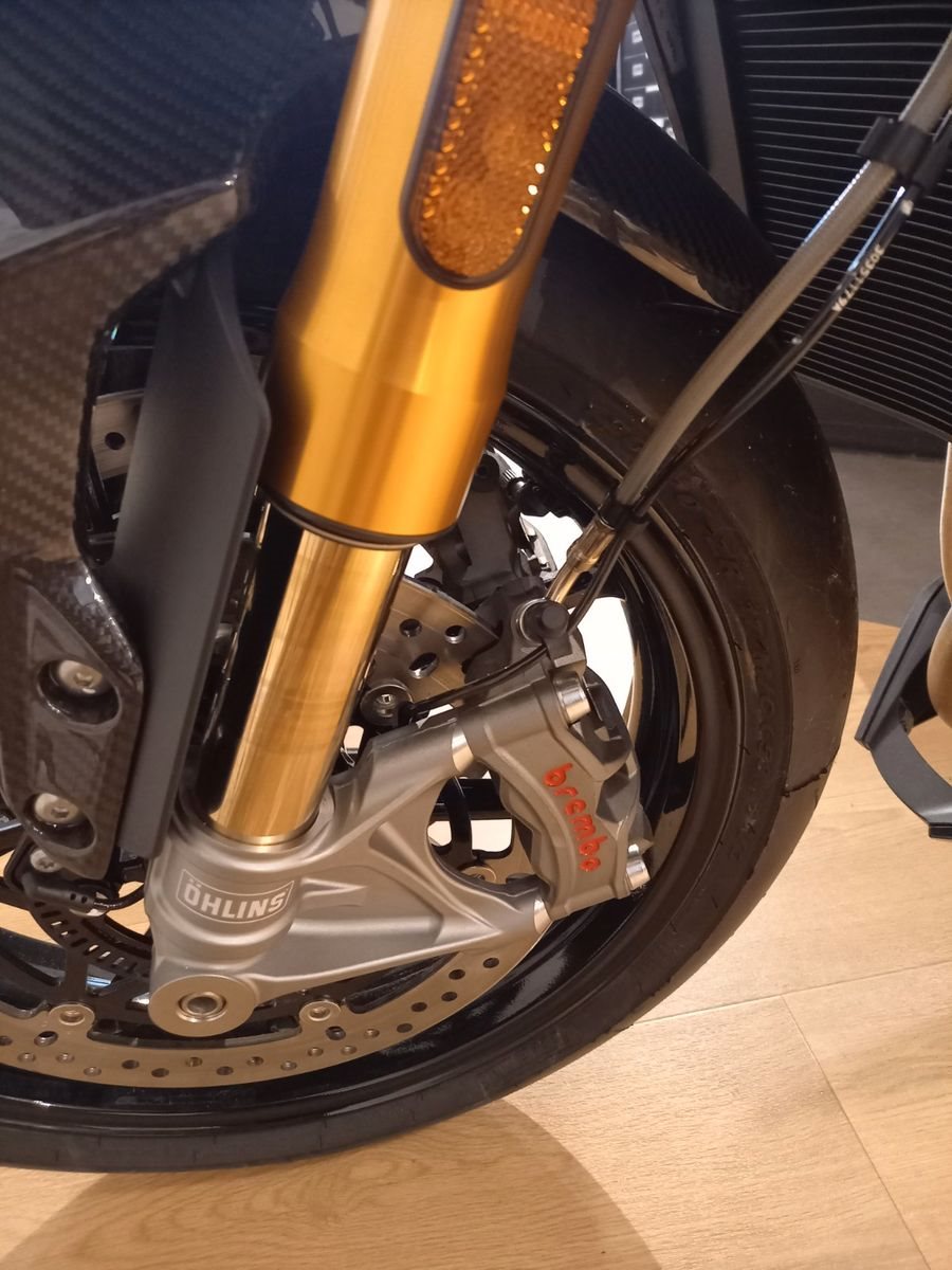-**serienmäßig u.a. ausgestattet mit: leistungsstarken Dreizylindermotor, 5 Fahrmodi, 5" TFT-Farbdisplay, Voll-LED, Kurven-ABS und Kurven-Traktionskontrolle, Wheelie Control, Schaltassistent zum kupplungslosen Hoch-und Runterschalten, Tempomat, Keyless einschl. Tankdeckel, Bluetooth Konnektivitätssystem, Semiaktives Elektronisches Öhlins Fahrwerk, Brembo Stylema Bremsen, Carbon Teile...