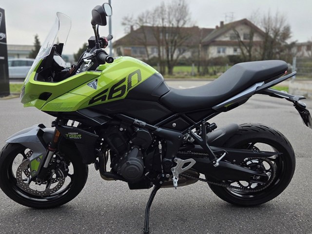 Die Tiger Sport 660 vereint Performance, Alltagstauglichkeit und Fahrspaß wie kein anderes Adventure-Bike der Mittelgewichtsklasse. Mit ihrem charaktervollen Dreizylindermotor, dem agilen Handling und der fortschrittlichen, fahrerorientierten Technik ist sie perfekt für Fahrer, die ein Motorrad suchen, das sich ihren Bedürfnissen anpasst - sei es für den Weg zur Arbeit oder die Tour am Wochenende. Als Zubehör ist ein A2-Drosselkit erhältlich, das von einem Vertragshändler montiert werden kann. Damit ist die Tiger Sport 660 auch für Inhaber eines Führerscheins der Klasse A2 geeignet. Nach Erwerb der uneingeschränkten Fahrerlaubnis kann die volle Leistung des Bikes problemlos wiederhergestellt werden.