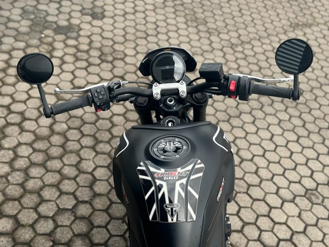 Zum Verkauf steht eine gepflegte Triumph Trident 660 in Schwarz aus dem Baujahr 2021 mit nur 1.937 km Laufleistung.