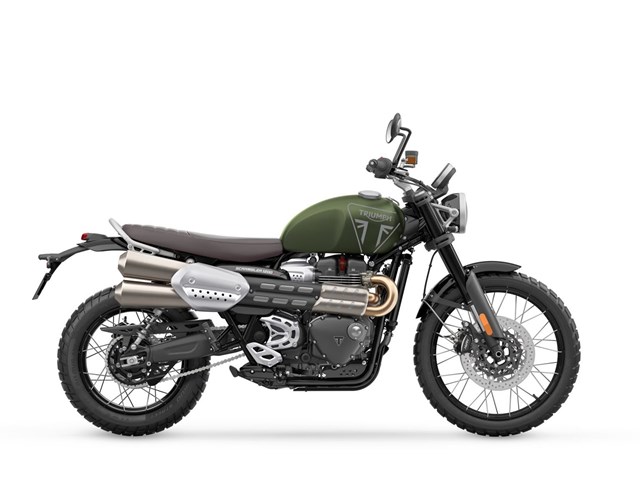 Zum Verkauf steht eine neue Triumph Scrambler 1200 X in der Farbe Matt Khaki Green.