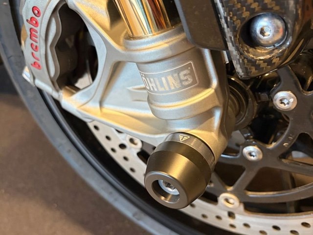Bei dieser Speed Triple 1200 RS ist die Inspektion frisch durchgeführt und es wurden neue Bridgestone S22 Reifen vorne und hinten montiert.