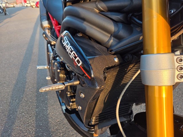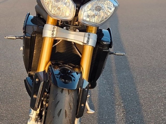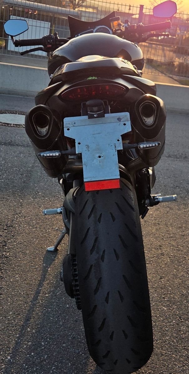 Akrapovic Auspuff, verstellbare Brems-/Kupplungshebel LSL, Carbon Soziusabdeckung, Carbon Motordeckelschützer, Carbon Seitenteile, Carbon Tankabdeckung, Tankpad, Lenkerendenspiegel, kurzer Kennzeichenhalter, LED Miniblinker, Flyscreen