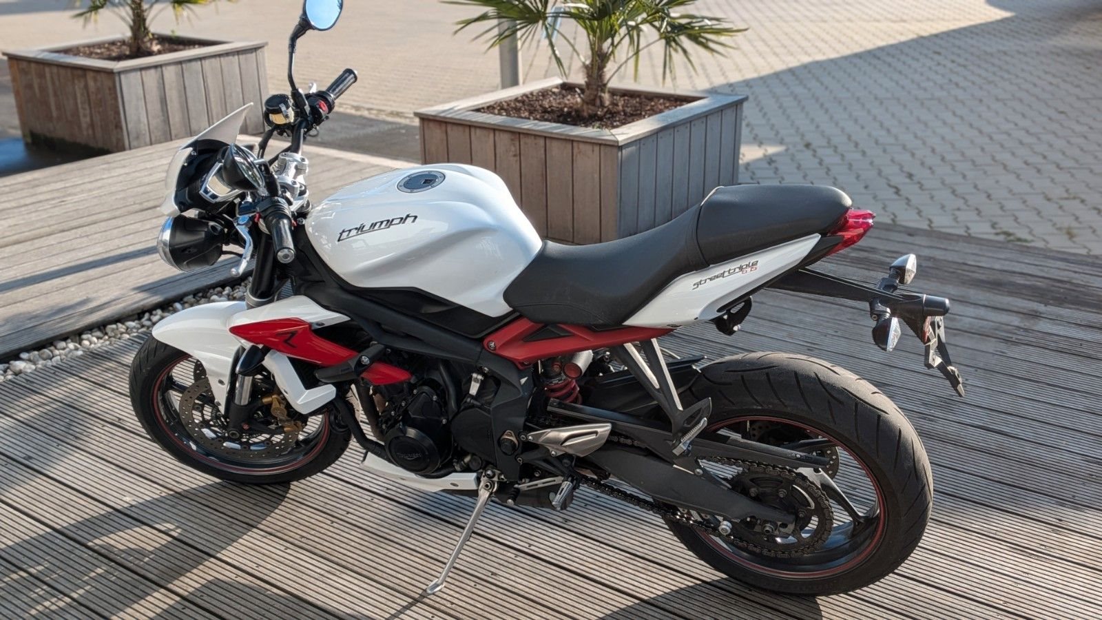 Zum Verkauf steht eine hervorragend gepflegte Triumph Street Triple R 675, Modelljahr 2013. Die Maschine stammt aus erster Hand, hat ca. 37.600 km gelaufen und wurde stets durch Vertragswerkstätten gewartet und lückenlos scheckheftgepflegt. Die HU ist neu, sodass das Bike sofort einsatzbereit ist.
