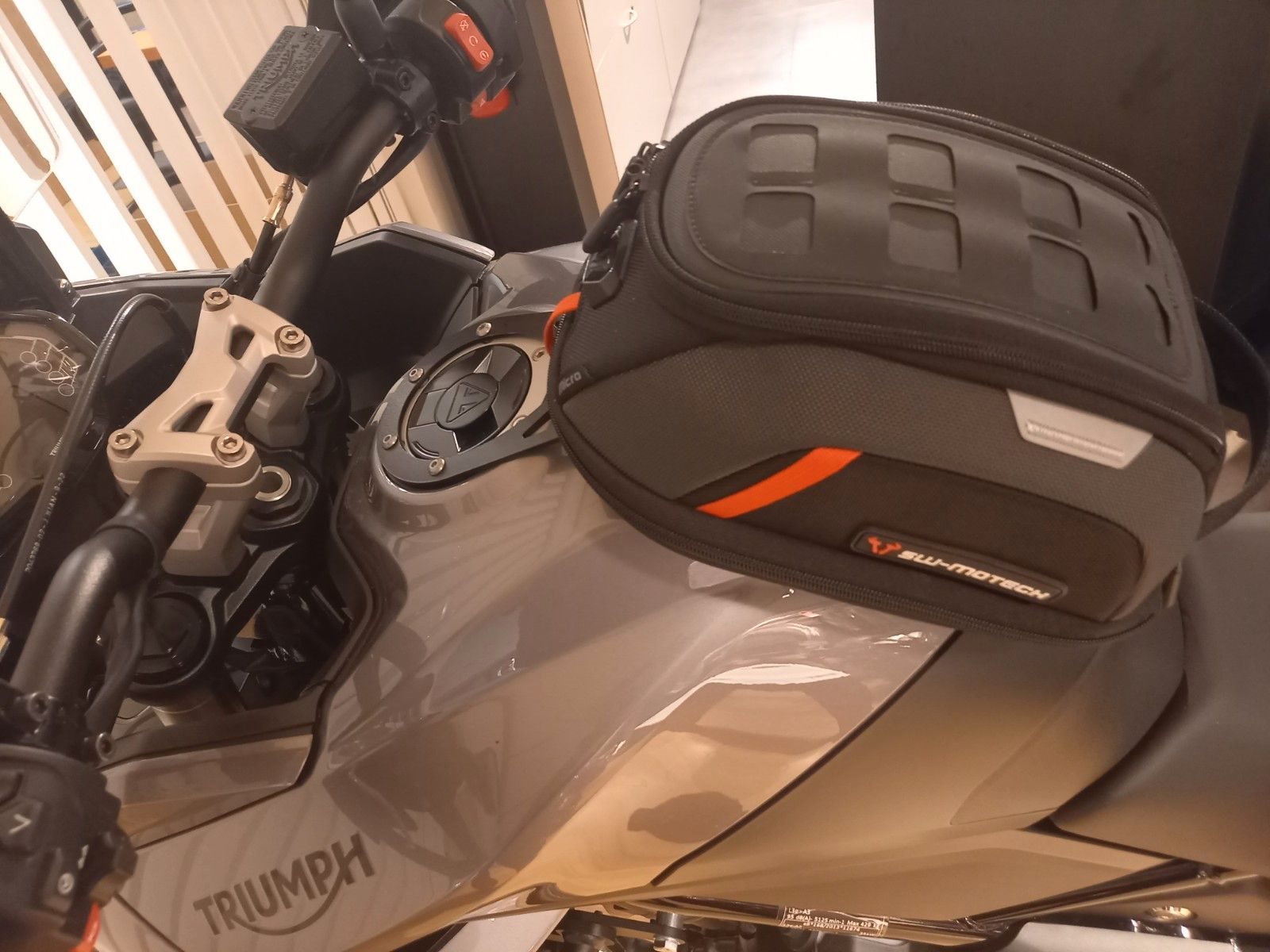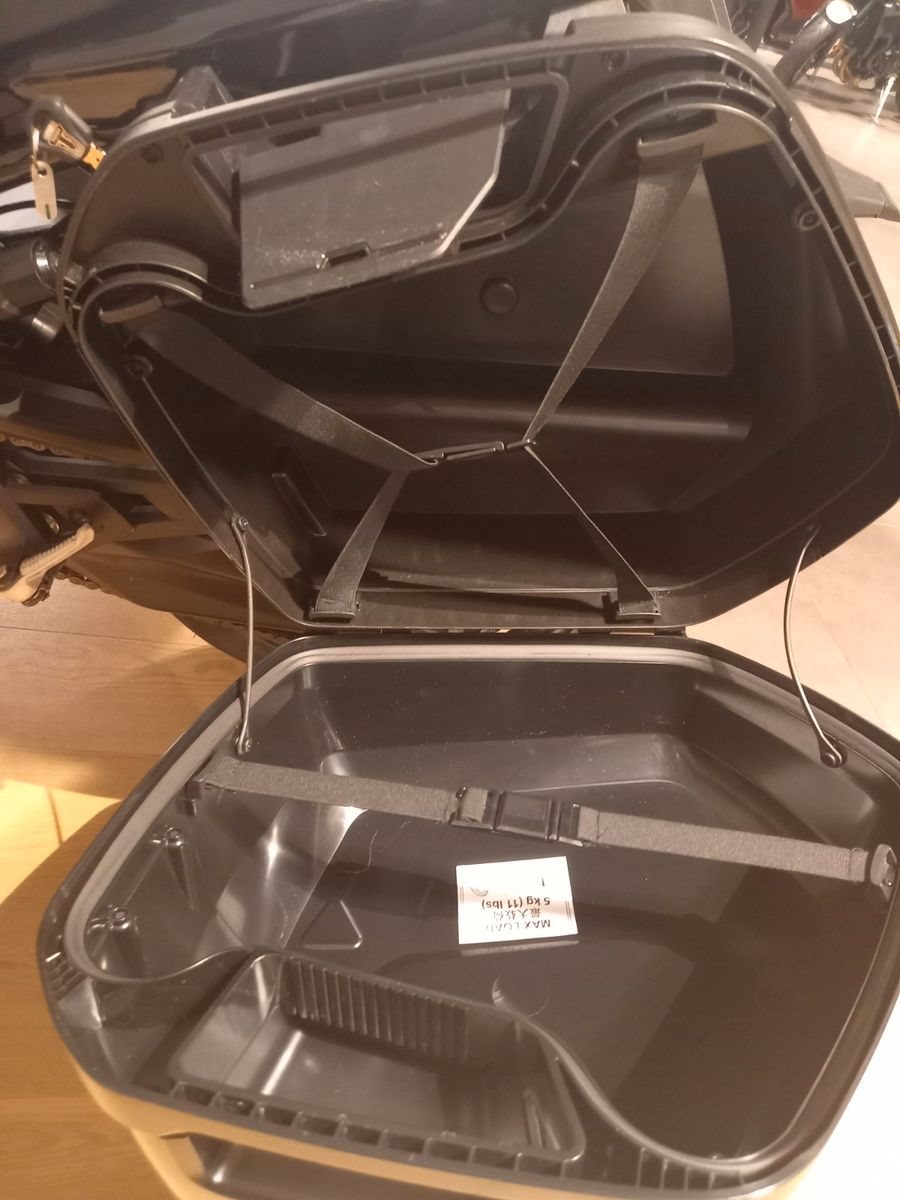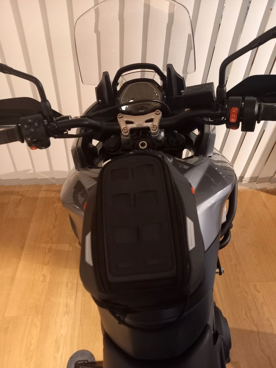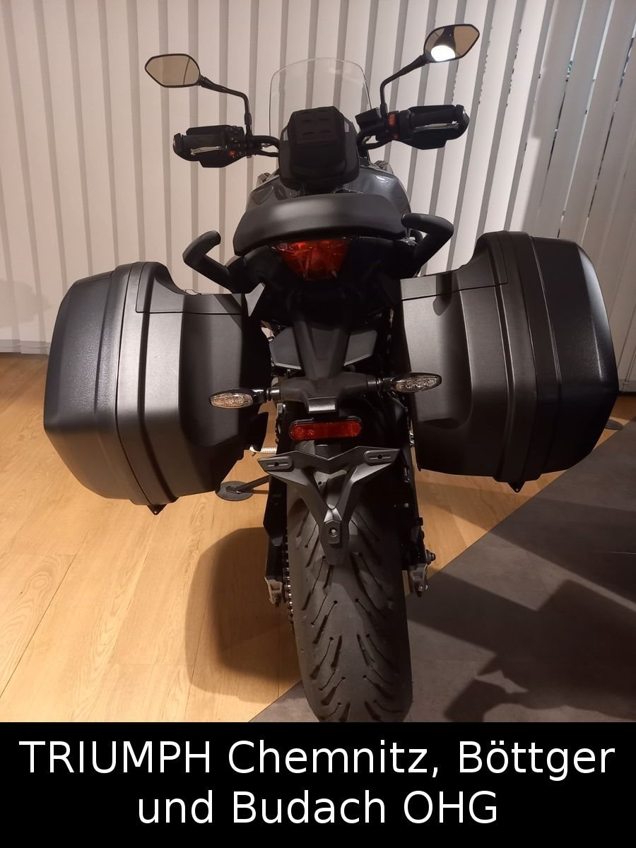 -verbaute Extras: 2-Koffersystem von Triumph mit Zündschlüsselschließung, Handprotektoren, Tankrucksack SW-Motech, Sturzbügel