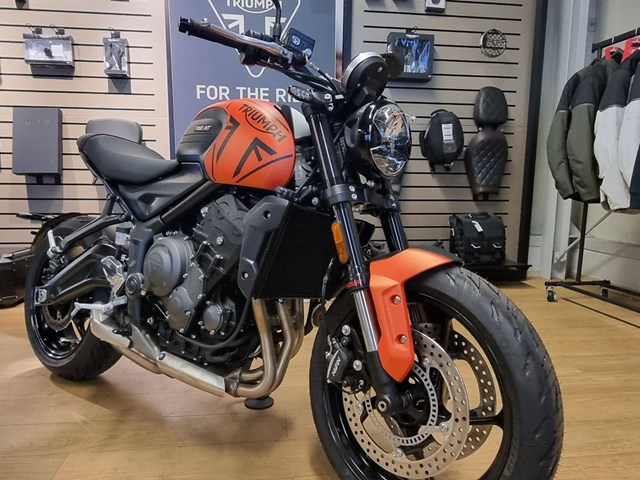 Zum Verkauf steht eine wunderschöne Triumph Trident 660 (Tageszulassung) in der Farbe Baja Orange.
